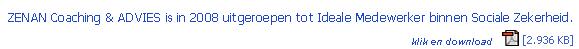 ZENANADVIES, oftewel ZENAN COACHING & ADVIES is een landelijk werkend adviesbureau op het gebied van de sociale zekerheid, jeugdbeleid en arbeidsmarkt. Wij ondersteunen Overheid, Zelforganisaties, Bedrijven, Brancheorganisaties en Werkzoekenden, door coaching, training en advies. Dat blijft noodzakelijk door de vele wetswijzigingen en verdergaande privatisering van de sociale zekerheid en natuurlijk de veranderende arbeidsmarkt. De verantwoordelijkheden van goed werkgeverschap worden net als de financiële belangen steeds groter. ZENAN COACHING & ADVIES wordt gezien als specialist op het gebied van de WWB/WSW/WW/WIA/Wajong & Arbeidsmarkt. Onze dienstverlening gaat echter veel verder. Wij trainen en adviseren ook op het gebied van vraaggerichte trainingen, verzuimpreventie, re-integratie, stages, (loonkosten)subsidies, eigen risicodragen WGA, arbeidsrecht en werkgeversschap.